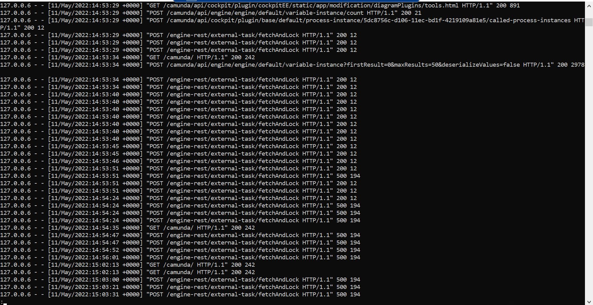- The error may involve org.camunda.bpm.engine.impl.persistence.entity.ExternalTaskEntity.selectExternalTasksForTopics