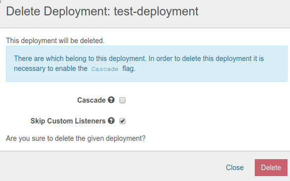 The info dialog while deleting a deployment is missing something. I think it want to say that there are running instances belonging to the deployment but I'm not sure. See attached screenshot.