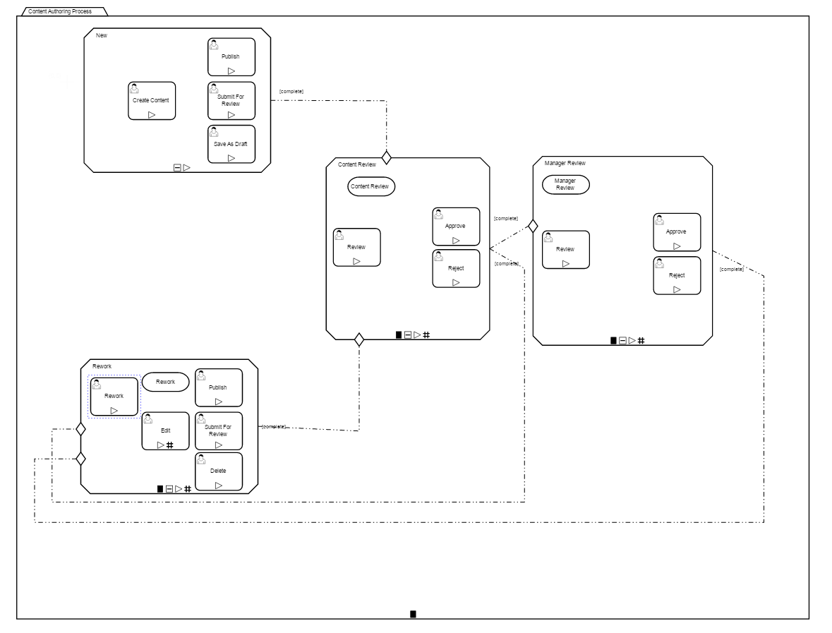 I've attached a test (source code available here) to highlight the issue. It uses a CMMN model (attached an image, and the cmmn to this issue). The test shows that if the Case is instantiated, and Tasks are completed in such a way that the Case transitions from New -> Content Review -> Rework -> Content Review -> Manager Review then two instances of each of the Tasks contained within that Stage are created.