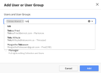 When adding users to a collection, the behavior is different than adding data sources to a templated dashboard or report.